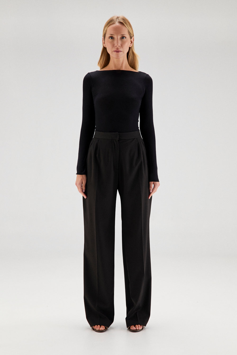 El modelo NERE es un pantalón de cintura alta, con dos pinzas en delantero.