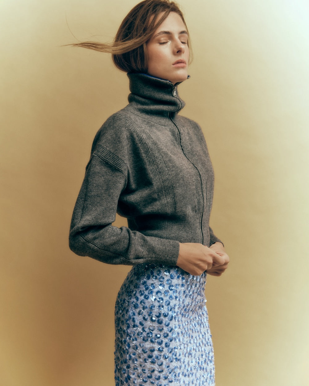 • El cuello puede llevarse subido o abierto, creando un bonito efecto sobre los hombros.