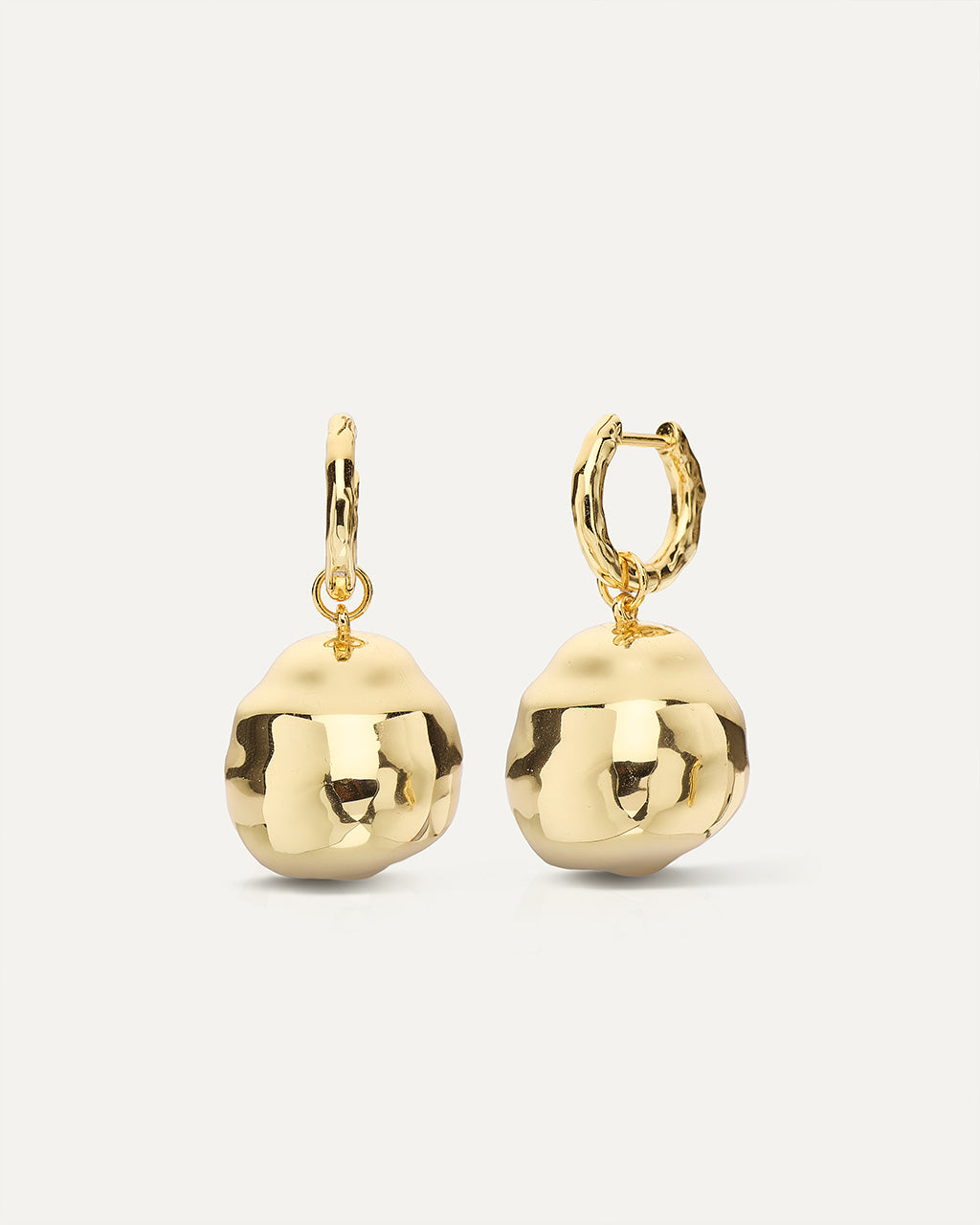 Organic hoops with irregular pearl-shaped pendants and 18K gold plating.