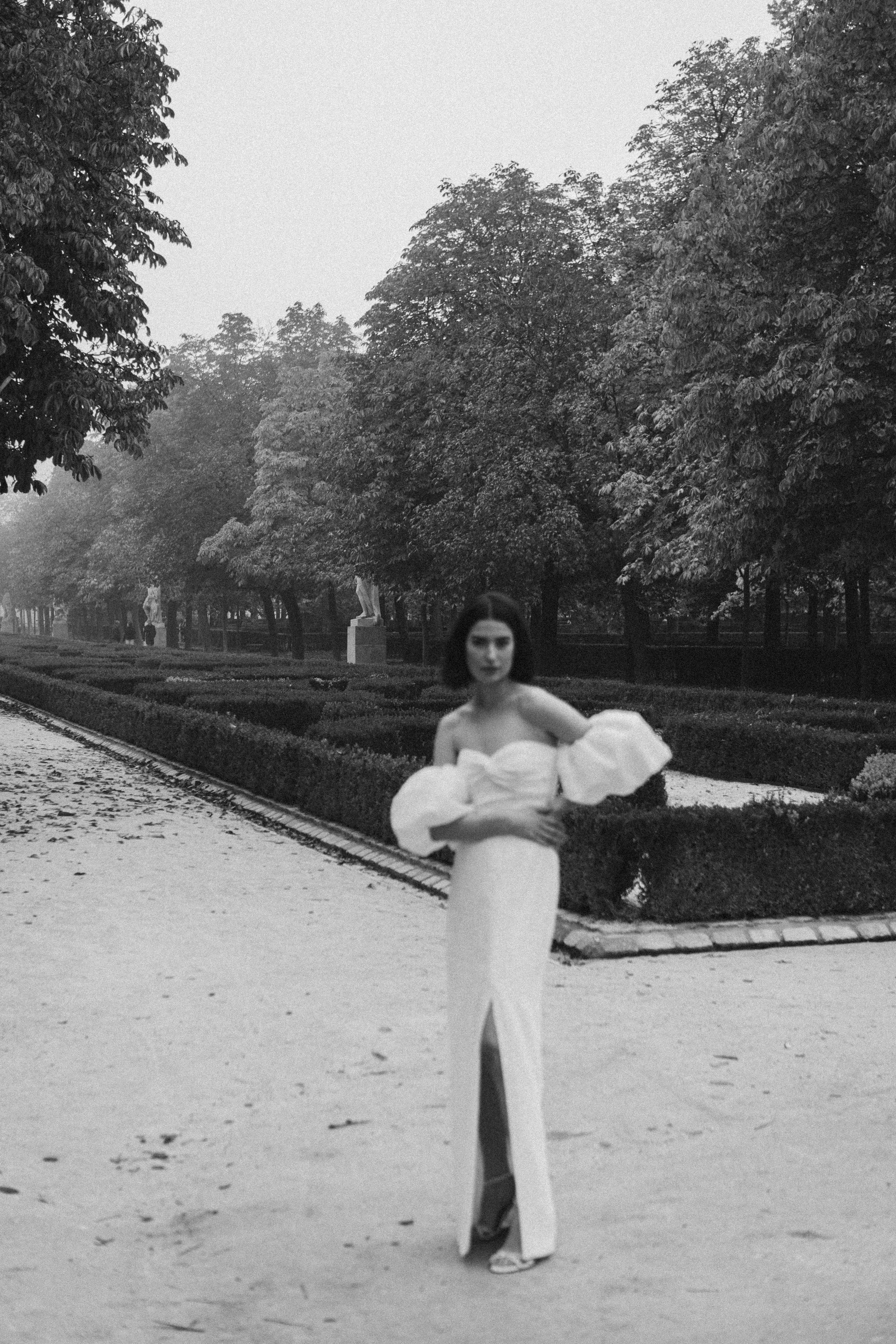 El detalle final de esta prenda es la abertura delantera que permite mostrar la pierna al andar, aportando comodidad al vestido.