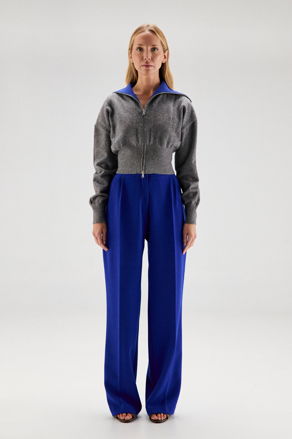 • Realizado en un tejido con textura y cuerpo, en color azul klein.