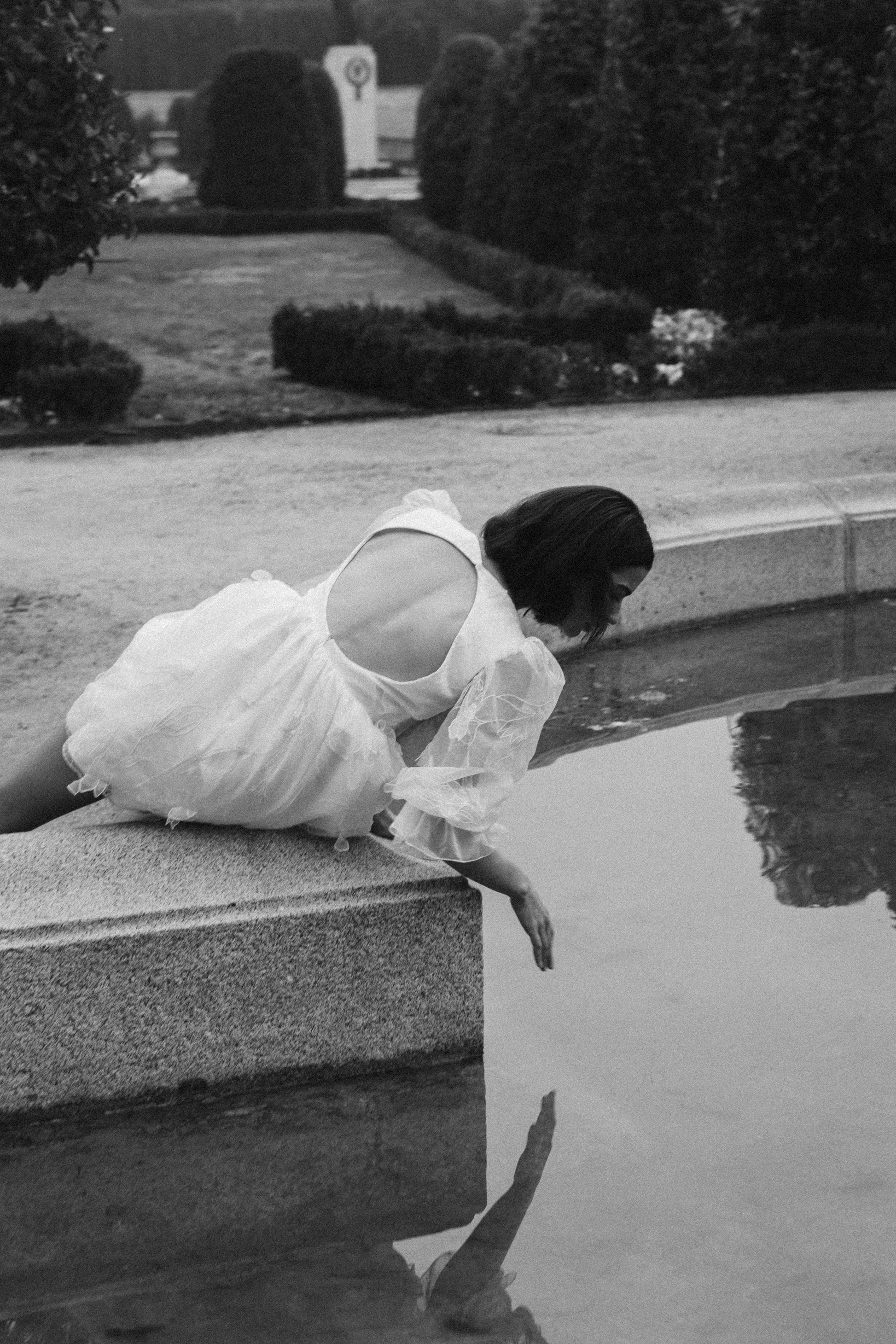 La prenda se abrocha mediante una cremallera invisible en la espalda y tiene como refuerzo un corchete en la parte superior.